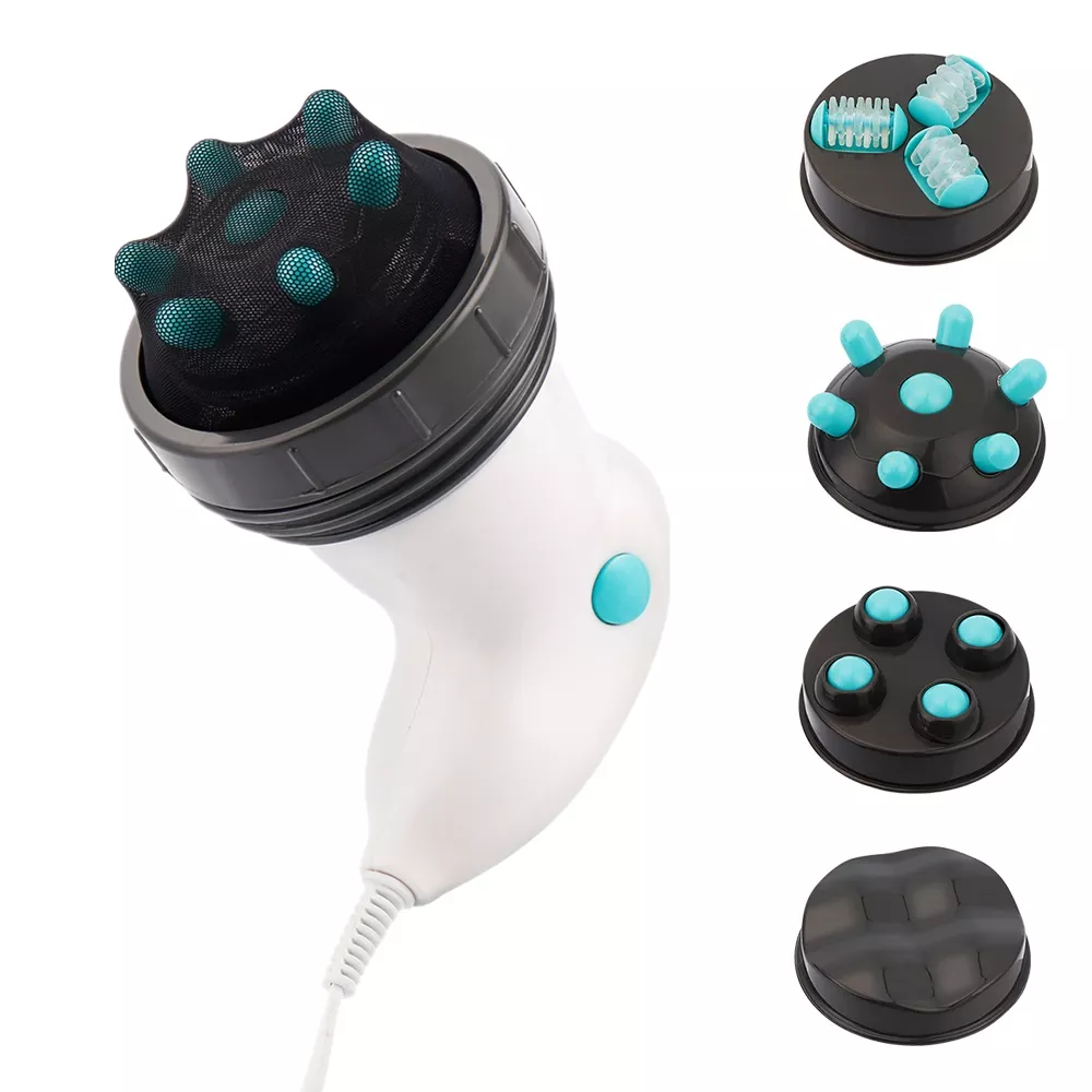 • Versatile Massage Heads: Includes four specialized heads—roller, finger, wave, and ball—each tailored for different parts of the body, from arms and legs to the waist and neck.